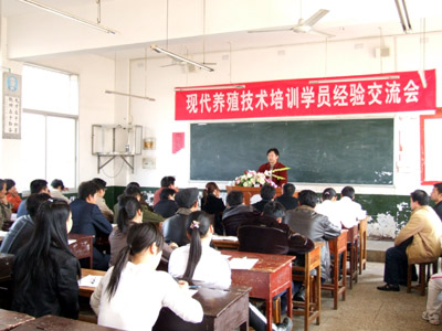 农林工程系系主任李九如、教学主任禹华芳、学工主任罗莉萍、继续教育部副主任李甄与现代养殖技术培训班40余名学员参加了经验交流会。会议由现代养殖技术培训班班主任江国元主持。