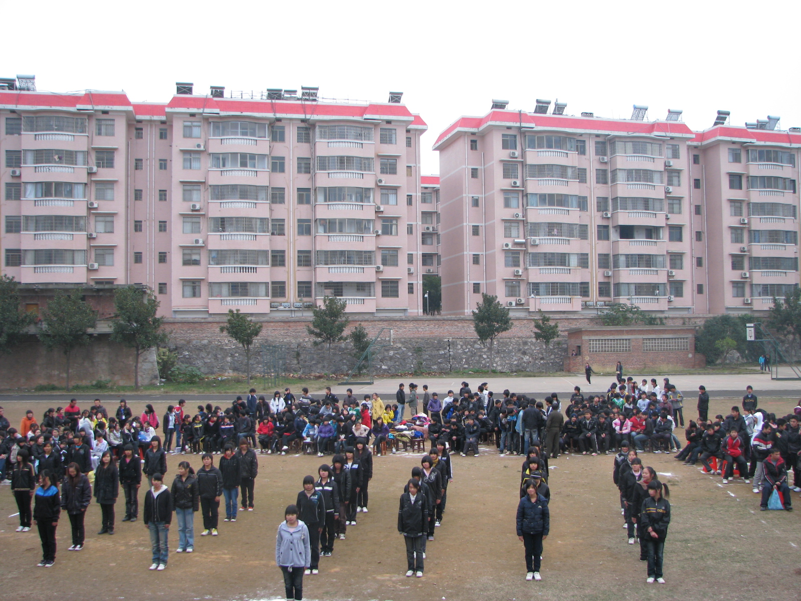 主席台上各位评委正在观看各班级的体操比赛