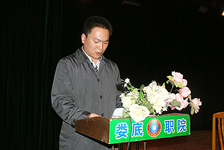 11月9日下午,2011年娄底市大学生创业培训娄底职院培训班开班典礼在南苑礼堂举行。娄底团市委副书记周庶舟,市人社局职业能力建设科科长戴邵新,市财政局社保科副科长曾宏,团市委宣传部长邓娟,我院院长杜祥培,副院长周意坚,继续教育部主任刘罗仁,招就处处长朱存斋,院团委书记欧芳及500名09级学生参加了开班典礼。典礼由周意坚主持。