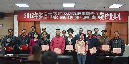 11月15日,2012年娄底市农村劳动力阳光工程农民创业培训班结业典礼在我院综合楼110教室举行。我院党委委员、副院长周意坚副教授、市农业局科教科科长谢光伟、我院继续教育部主任刘罗仁、副主任邓喜培、李甄出席仪式。110名学员圆满完成培训,取得结业证书。典礼中还表彰了吴见中、杨韶东、谭艳玲等优秀学员。典礼由刘罗仁主持。