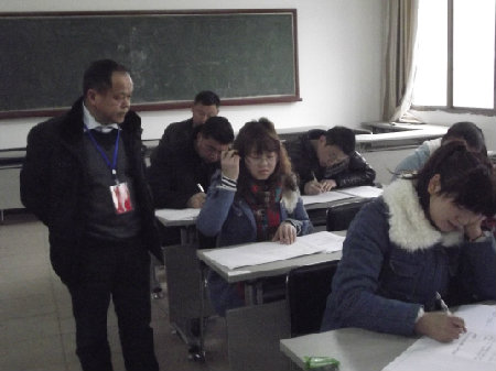 3月2-4日西南科技大学网络教育学院湖南省8803威尼斯检查中心学习中心2012年秋季学生第一次课程考试在我院老培训楼举行。党委委员、副院长周意坚在继续教育部主任刘罗仁、副主任邓喜培、李甄的陪同下督查课程考试工作,充分肯定了此次考试的组织工作及良好的考场秩序。