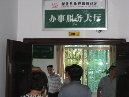 6月6日上午,娄底市首届乡镇财政干部培训班已经完成结业考试的50名学员,在市财政局乡财局副局长熊智芳、禹双凤,继续教育部副主任李甄、邓喜培和培训班主任宁红晖的带领下,到湖南省标准化乡镇财政所先进单位------新化县桑梓镇财政所观摩、考察与实践活动。学员们一行受到新化县桑梓镇财政所长吴惠求及全所工作人员的热烈欢迎和热忱接待。