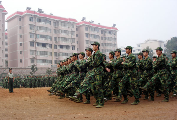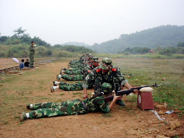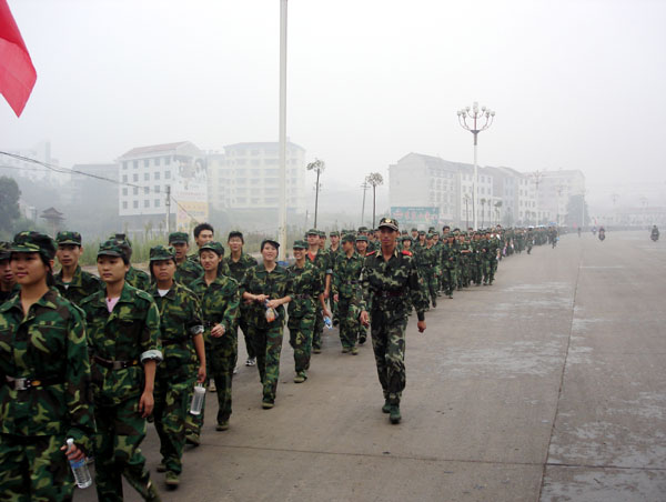 9月15日,我院2006级大专新生军训顺利结束,上午在学院操场举行了军训汇报表演。2006级大专新生军训自9月2日开始,武警邵阳支队的官兵们带领新生们进行了为期14天的意志品质的磨练。新生们通过了长途拉练、野外打靶的考验,每天坚持军事训练和内务整理,学习了军人不怕苦不怕累的精神,增强了同学们的集体荣誉感,体现了新时代大学生的风采。(刘艳)
