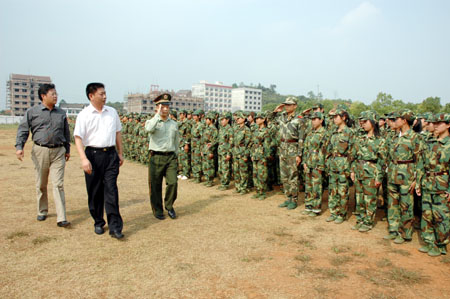院长刘演林在副院长颜彩飞、承担本次军训任务的武警邵阳支队副支队长刘日升的陪同下检阅了雄壮的军训队伍。随后,举行盛大的阅兵式。在教官的带领下,新生们迈着整齐的步伐,雄赳赳、气昂昂地走过主席台前,接受全体领导的检阅。军训教官们还进行了综合倒功表演,他们的动作虎虎生威,赢得了大家热烈的掌声和欢呼。
