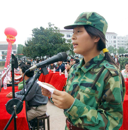 副院长颜彩飞和武警邵阳支队副支队长刘日升发表讲话,向此次军训圆满结束表示祝贺,向在军训中不畏艰难、英勇顽强的全体教官和新生表示慰问,并希望大家将军训的收获再带到今后的学习生活中去,取得更大的成绩。