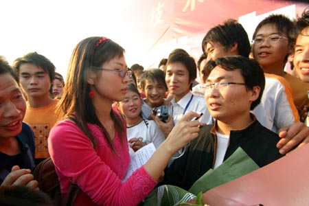 洪战辉讲述了他如何坚强地经受家庭巨变的考验,从家徒四壁、孤苦无依变得能够自己独立赚取生活费用,10余年带着收养的妹妹求学,含辛茹苦而自强不息的奋斗经历。听到动情之处在场的大学生们都纷纷为之感动落泪。报告会结束后,我院学生现场向心目中的偶像提出问题,洪战辉在回答提问时表示,自己只是平常的一个人,他能做到的大家也能够作到,但是一个人要有所成就,必须在看准了奋斗方向后就坚持不放弃,同时立大志者必须学会做小事。他向学院的全体学生赠送了三句话:一是苦难经历并不能当作自己的资本,只有奋斗才是最重要的;二是贫穷并不可怕,必须通过奋斗改变贫穷落后的状况;三是有作为才能有地位,负责任才能图发展。他号召在场的学子们努力学习,“今天我以学校为荣,明天学校以我为荣”。洪战辉的精彩报告获得了在场听众多次长时间的热烈掌声。