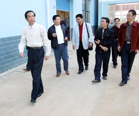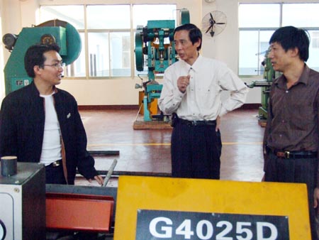 党委书记胡卫平向洪战辉介绍我院机电数控设备