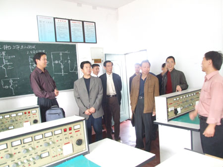 随后,专家组成员考察了我院的教学仪器设备和实验室设置,重点考察了ERP实训室及实习工厂。专家组组长省经济委员会副主任刘送保对我院实验实训设备及培训能力评价很高,并对学院的管理和发展寄予厚望。