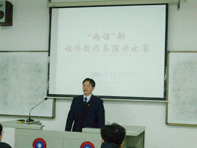 随着信息技术的发展,多媒体教学在教学过程中的作用和影响越来越明显,它对于提高“两课”教学的感染力、说服力和吸引力有很大帮助。为了促进教师提高课件制作水平,为大家提供一个相互交流和学习的机会,12月12日晚上7点,“两课”部在主教学楼106教室举办了教师课件制作与演示竞赛,并邀请计算机系计算机应用教研室主任唐曼琳副教授、软件教研室主任艾长春副教授和吴少军教师担任评委。此次竞赛,绝大部分教师都准备了课件,并进行了现场演示。教师们展现的课件基本上都插入了图片、声音、视频,使课堂教学变得更加生动、形象。最后,经过评委认真评比,李曦获得比赛一等奖,周旺东、肖希蓉获得二等奖。(文/肖希蓉 图/李曦)