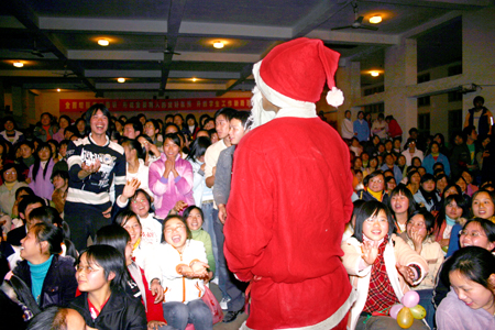 12月25日,财经贸易系“庆圣诞 迎元旦”晚会在礼堂举行。该系主任、副主任、各班班主任和同学欢聚一堂,共庆节日。