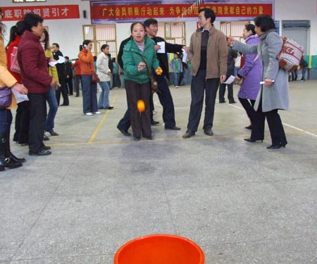 12月29日,学院室内体育馆横幅高挂、人声鼎沸、喜气洋洋,由院工会组织的2007年教工迎元旦游艺活动在这里举行。游艺活动共设置了猜谜语、套圈、掷乒乓球、掷飞镖、击门球、投篮球、瞎子击锣、射气球八个项目。教师们在这里以欢歌笑语迎接着新一年的来临。