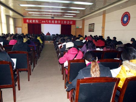 2007年1月19日,我院在多功能报告厅召开了2006年度教学工作会议。院领导刘演林、彭建胜、周新元、宁小玲、郭和生、朱建国、颜彩飞、龙伟出席会议。刘演林院长发表讲话,龙伟副院长作2006年度全院教学工作报告,机电系、计算机系、财贸系旅游管理教研室分别作了典型经验交流发言。全院副高职称以上教师、副科以上干部、教研室主任参加了会议。会议由党委副书记彭建胜主持。
