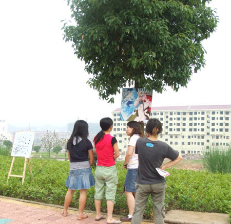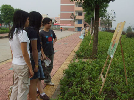 5月30日,05电美1班在大学生公寓旁的崇德路举办了第二场装饰画展。(文/欧阳琦  图/张云峰)