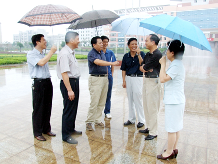 6月13日上午,省人大常委会副主任唐之享在娄底市市长林武、副市长肖新桃的陪同下,冒雨来到我院视察。一进入学院大门,唐之享就对我院优美的校园环境赞叹不已,主动要求在学院广场合影留念。党委书记陈立楚、院长刘演林向唐之享汇报了我院这几年在市委、市政府的正确领导和大力支持下所取得的成绩。唐之享听了非常高兴,他说,娄底职院给人的感觉是朝气蓬勃,发展态势很好,令人耳目一新。唐之享指出,办好高职教育一定要加强与企业的联系,可以聘请涟钢、涟邵、华达等大型企业的老专家作为兼职教授;要根据企业的需求来设置专业,办出特色来,更好地服务地方经济;要加强制度建设,用制度来管人、管事。刘演林院长还就我院新征地的拆迁工作进展向林武市长作了汇报,林武表示政府将加强协调,全力支持我院的新校区建设。(张云峰 王宗凡)