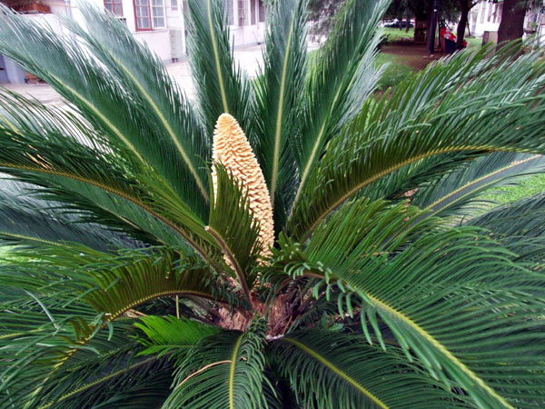 6月26日清晨,我院南苑教职工宿舍旁的一株铁树绽苞吐蕊,开出了绚丽的花朵,为学院增添了一道难得一见的风景。我院这株铁树开出的是雄花,花大约有20厘米长,状如玉米,颜色鲜黄,被绿色扇形的铁树枝条簇拥着,引得不少好奇的师生争相前往观赏。