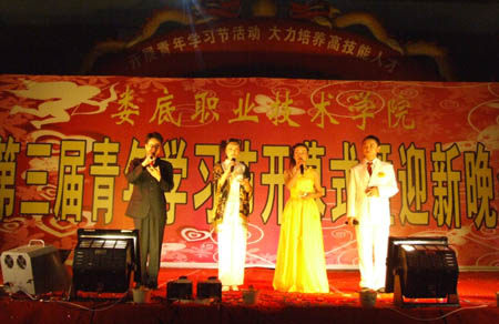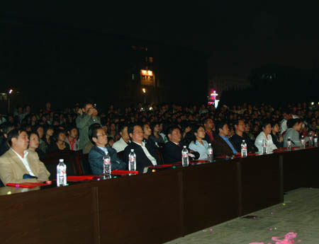 10月22日晚,在党的十七大胜利闭幕的美好时刻,我院在文化广场隆重举行第三届青年学习节开幕式暨迎新晚会,团市委书记康艳华、院领导刘演林、彭建胜、宁小玲、龙伟、刘自斌、袁其谦、邹松建以及各处室系部负责人、教师代表、学生代表约7000余人观看了演出。