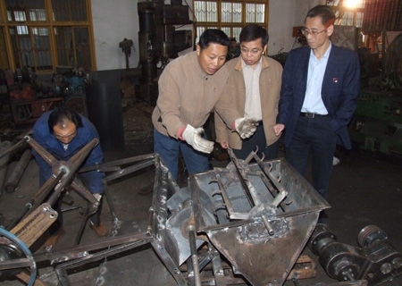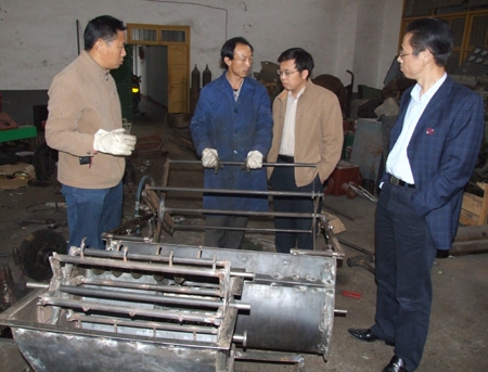 目前“高效水稻微型收割机研制开发”项目进展顺利。副院长龙伟详细了解了样机设计、试制、试验进展情况,对以阳尧端副教授为首的科研课题组的辛勤工作和取得的前期成果给予了充分的肯定,并与课题组各位工程师、技师们亲切交流。院长助理邹松建要求课题组成员在新一代样机试制上要从农村市场实际需要出发,抢夺收割机市场技术制高点,并注意自主知识产权的保护,为未来大批量生产和市场开发打下坚实的基础。