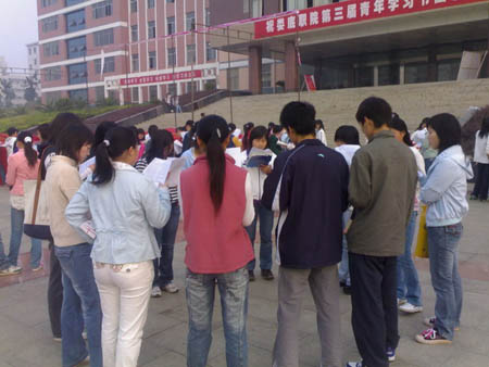 英语口语协会创办已有3年历史,是全院大型社团之一,也是外语系特有的“家庭社团”,现有150多名“家庭”成员。在外语系刘燕主任,贺建良主任、毛洁老师,外教JIM和LINDA的精心策划和耐心指导下,通过协会理事会和全体会员的共同努力,我们以英语小组合作学习策略为指导,分成九个兴趣小组。我们以李阳老师的“最大声”、“最清晰”、“最快速”三最训练法为手段,我们选用激励人生、朗朗上口、易于背诵的材料作为晨读资料,这不仅调动了会员的积极性,提高了学生的口语表达能力和交际能力,而且促进了良好的学风的形成,带动了全院的学习气氛,使往日寂静的校园不再被那些单调的花草树木所掩盖,如今,我们也已不再是那些害怕出错而不敢说英语的胆小鬼,而是充满自信、敢于表达、善于表达的莘莘学子。