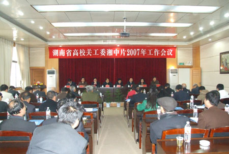 11月17日,湖南省高校关工委湘中片2007年工作会议在我院报告厅召开。会议就贯彻落实湘教通[2007]236号文件精神,发挥老同志余热,推动关心下一代工作的开展,进行了认真深入的交流研讨。娄底市委巡视员、原市委副书记赵协卿、省教育厅关工委主任余振均、副主任孔柳华、常务副秘书长黄朝强、娄底市关工委主任曾畅元、我院党委书记陈立楚、院长刘演林、党委委员、工会主席刘自斌、调研员、院关工委主任朱建国、我院有关部门的负责同志以及湖南工业大学、湘潭大学、湖南科技大学等湘中片区18家高校关工委的负责同志参加了会议。