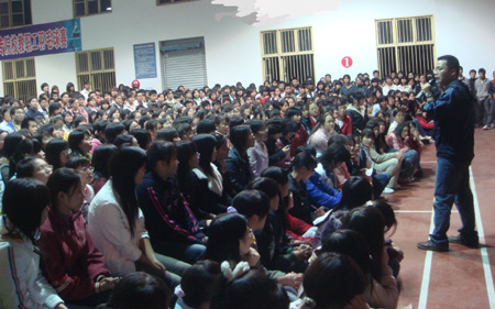 11月21日晚19:30,明天国际教育CEO谢仰嵩 “英语学习和人生经历”的讲座在我院风雨操场举行。外语系的刘燕主任、贺建良副主任以及外语系全体学生亲临现场听取了讲座。现场气氛异常火爆,在讲座中谢仰嵩强调了自信乐观的求学态度和创新思维对英语学习的重要性。认为学习英语要与学习该国文化紧密结合,只有在特定的文化氛围中掌握的语言才是实用的语言。谢仰嵩幽默诙谐的演讲风格激励了所有在场的同学,也增强了大家学习英语的自信心。(文/实习记者 江焕 图/陈言贵 )