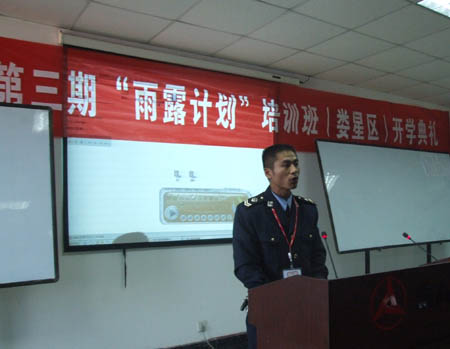 11月28日下午,我院2007年第三期雨露计划培训班开班典礼在三一重工中兴液压件有限公司培训大厅举行,娄底市扶贫办主任陈绍晚、娄星区农办主任刘协和、娄星区扶贫办主任刘玉贤、娄星区财政局主任孟宏生、陈胜、三一重工中兴液压件有限公司人事部部长张日、我院院长助理袁其谦、继续教育部主任朱存斋、副主任李甄出席,三一重工中兴液压件有限公司72名新聘用的当地农民工学员参加了典礼。陈绍晚、刘协和发表讲话,称赞我院培训工作开展得好,培训理念先进,教学组织精心,管理严谨,就业效果好,感谢职院主动服务社会、服务企业,为地方经济发展作出贡献。张日在讲话中对政府、学院表示感谢,对受训员工们提出了几点要求,并承诺,若工人们考试合格,取得了相关的资格证书,马上加薪。我院继续教育部主任朱存斋介绍了学院的基本情况、办学理念,提出要进一步完善政府、企业、学校多方联动机制,以服务地方经济,为企业培训出合格的专业技术人员。学员代表发言,表示将珍惜这次培训机会,努力提高技术水平,争取成为岗位能手。
