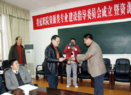 1月11日,我院资源类专业建设指导委员会成立暨资源工程系客座教授聘任仪式在实训楼会议室举行。副市长邓建和、院党委书记陈立楚、院长刘演林、党委副书记彭建胜、副院长龙伟以及学院办公室、教务处、资源工程系的负责同志、客座教授参加了仪式。