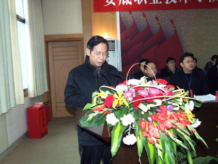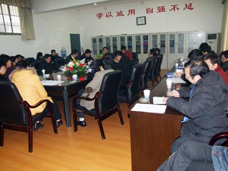 刘演林作题为《统一思想,凝聚人心,开拓创新,加快发展,为把我院建成省级示范性高等职业院校而努力奋斗》的工作报告,具体总结了学院2007年的工作情况:一是修订了学院发展的总体规划;二是机电工程学校整合进入我院的工作取得新进展;三是教育教学改革取得新成效;四是成人学历教育和职业培训工作取得新进展;五是科研工作取得新突破;六是加强了师资队伍建设;七是深化了内部管理体制改革;八是加强了招生就业工作;九是办学条件进一步改善;十是加强了党建和思想政治工作。刘演林从8个方面概括了2008年学院要做的主要工作:一是以省级示范性高等职业院校建设标准为依据,不断完善创建方案,切实明确学院各项工作的目标;二是以专业建设为龙头,不断完善符合技能性人才成长规律的培养模式,切实提高人才培养质量;三是以调整结构为重点,不断完善师资队伍建设机制,切实提高教师执教能力;四是以强化执行为重点,不断完善适应可持续发展要求的内部管理体制,提高管理水平;五是以优化育人环境为主旨,不断加强以弘扬职业文化为取向的校园文化建设,切实提高学院育人功能;六是就业为导向,不断完善招生、培养、就业一体化的人才培养机制,切实提高学生的职业素质;七是以改善实训条件为主体,不断改善办学条件,切实提高学院办学的基础能力;八是以服务社会为宗旨,不断加强技术服务平台建设,切实提高辐射能力。