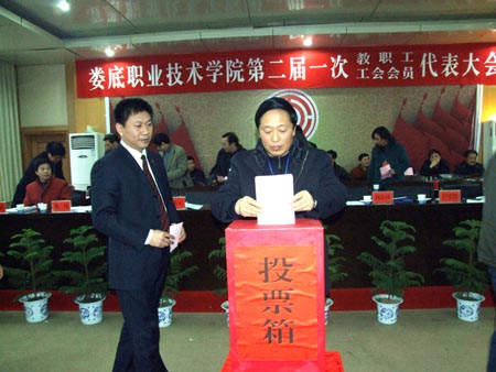 彭建胜向大会作学院岗位津贴实施细则修改说明。工会主席候选人刘自斌作《与时俱进,开拓创新,发挥工会组织的重要作用,为构建和谐娄职特色娄职做出新的更大的贡献》的工会工作报告,总结了工会几年来的工作情况:一是积极行使工会职能,切实发挥了民主管理和民主监督作用;二是积极开展教育活动,有效地提高了教职工队伍整体素质;三是不断拓展服务领域,切实为教职工办好事办实事;四是积极推进自身建设,切实增强了工会的服务能力。刘自斌指出,今后三年中,学院工会将广泛组织教职员工,为构建和谐娄职、特色娄职奠定良好的群众基础、思想基础、服务基础、制度基础、组织基础。