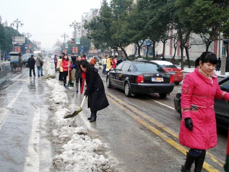 隆冬季节,一场突如其来的大雪为我市人民的生活与出行带来了极大的不便,我院教职工们积极响应市委号召,在院党委书记陈立楚的带领下,上街清扫积雪,为保障人民群众的出行安全奉献自己的一片爱心。(王宗凡)
