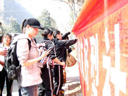 随后,我院青年志愿者们共同在书写着“建设资源节约型、环境友好型社会从我做起”的横幅上签下了自己的名字,决心用用实际行动来弘扬雷锋精神,自觉服务社会。