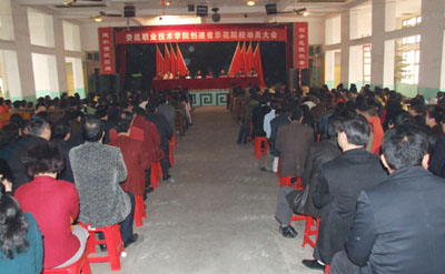 3月6日下午,我院创建省示范院校动员大会在学院大礼堂召开。院领导陈立楚、刘演林、彭建胜、周新元、宁小玲、颜彩飞、龙伟、周意坚、刘自斌出席大会,院长刘演林做创建省示范院校动员报告,党委书记陈立楚发表重要讲话,党委副书记彭建胜宣读了有关表彰决定。大会由陈立楚主持。全院教职工参加了大会。