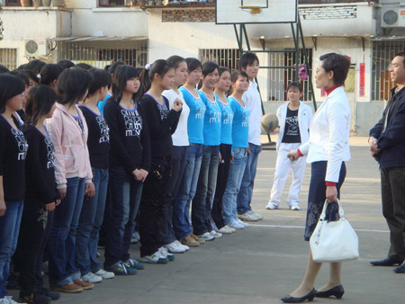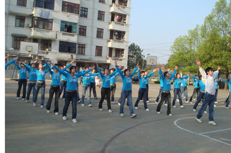 下午4:30,在领操员的带领下,各班有秩序的进入了比赛候场区。4:40体操比赛正式开始,比赛中同学们以饱满的热情、蓬勃的朝气完成了此次比赛,经过评委认真、公正的评选,07级旅游英语大一班赢得了此次比赛。(文/图 外语系网络编辑部)
