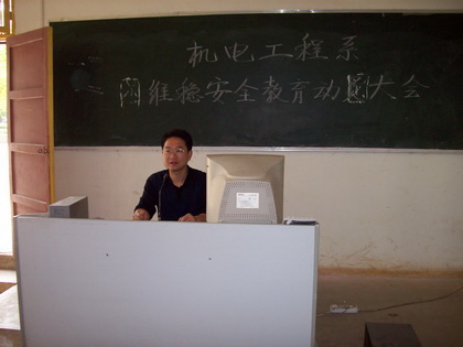 4月28日中午,机电系在科技楼召开了一次以维护社会稳定、保障学生生活安全为主题的大会。学工主任朱勇志、系学生党支部书记毛玲英、系团总支书记徐志豪老师出席会议。各班班长、团支书、学生党员及学生会各部门部长参加了会议。