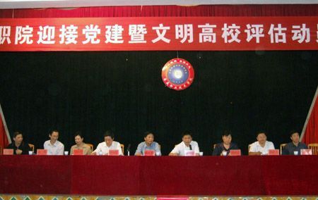 院党委书记陈立楚在会上做了《全院动员,全院参与,全心投入,为创建党建先进高校和省级文明高校而努力奋斗》的讲话。号召全院师生员工统一思想,深化认识,强化责任,扎实工作,把广大师生员工的思想统一到迎接两项评估的工作中,把工作着力点转移到做好迎接两项评估的各项工作中;把各项保障措施落实到两项评估的各项具体工作中。并指出两项评估工作是“转移工作重点,提升学院内涵”的应有之义,是“打造品牌,塑造形象”的迫切需要,是确保学院正常办学方向、实现学院持续健康发展的根本保证。