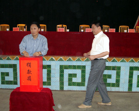 大会开始前,院领导为灾区捐款