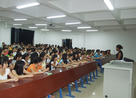6月14日晚,外语系邀请外教Linda在主教学楼210教室主讲“中西文化差异”,外语系部分教师和学生、口语协会全体成员及全院英语爱好者汇聚一堂,讲座现场气氛火爆。
