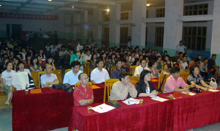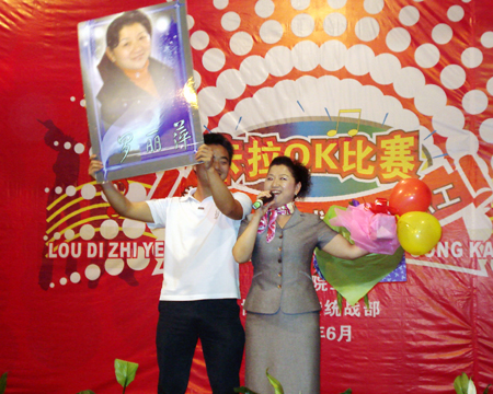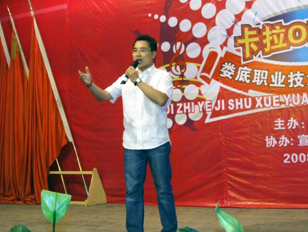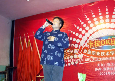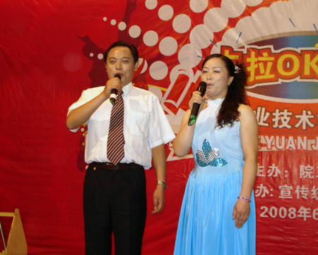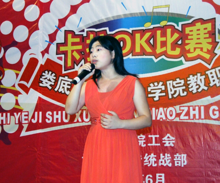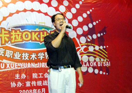 6月17日晚间的学院礼堂,张灯结彩,喜气洋洋,由我院工会主办、院宣传统战部协办的 “教工风采”卡拉OK比赛在这里举行。院党委书记陈立楚、党委委员、工会主席刘自斌、各系部处室的负责同志、离退休老同志、教职工和部分学生观摩了卡拉OK比赛。大赛由声乐专业教师担任评委。
