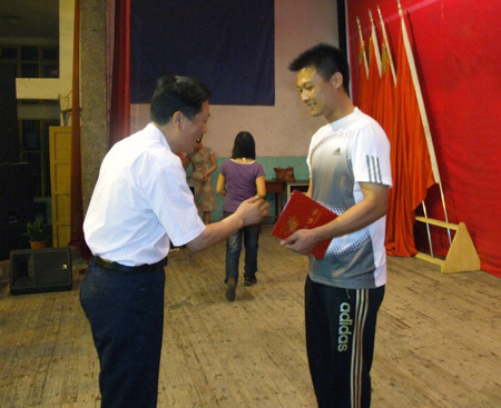观摩此次“教职风采”卡拉OK比赛的领导及大赛评委为获奖选手颁发了奖金和证书。(文/刘艳 杨正强 图/王宗凡 杨正强 曾春桃)
