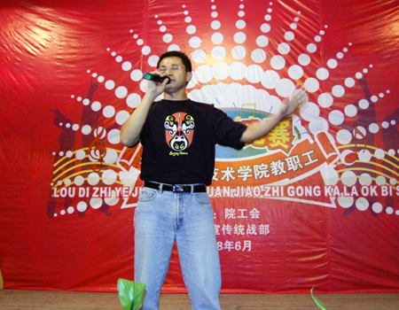 在大赛中, 20位老师一一登台一展歌喉,在他们中间有教学一线的专任教师,有学生管理部门的工作人员,有科研和教辅人员,还有后勤保障人员。他们纷纷使出了看家本领,将自己精心准备的歌曲或深情、或激昂、或舒缓地展现给了在座的全体听众,一首首声情并茂、铿锵有力、旋律优美的歌曲表达了教职工对祖国、对事业的无限热爱,展示了我院教职工团结向上、奋发进取的精神风貌。引起台下阵阵掌声和喝彩声,观众热情地挥舞着双手,为选手们加油,比赛现场气氛轻松而热烈。特邀嘉宾李冰克和沈名长老师也引吭高歌,为本次大赛助兴。