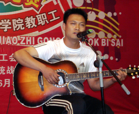 经过一番激烈的角逐,保卫处分工会杨梦辉以一曲吉他弹唱《难道》赢得了在场所有听众的一致好评,获得一等奖,学工、团委分工会罗丽萍演唱的《爱在天地间》、党群、纪监、审计分工会刘艳演唱的《长大后我就成了你》获得了二等奖,朱存斋、佘芙蓉、龙育才、贺凯、邹慧鹏、贺山青、李晶等教师获得三等奖。