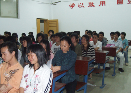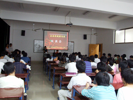 10月24日,我院电子信息工程系在主教学楼四楼和五楼的部分教室召开07级学生暑假社会实践座谈会,系主任吴莲贵、系党总支书记唐毅慈、教学主任游新娥、学工主任申东亮、电子信息工程系07级各班班主任以及200余名参加暑假社会实践活动的同学参加了座谈会。