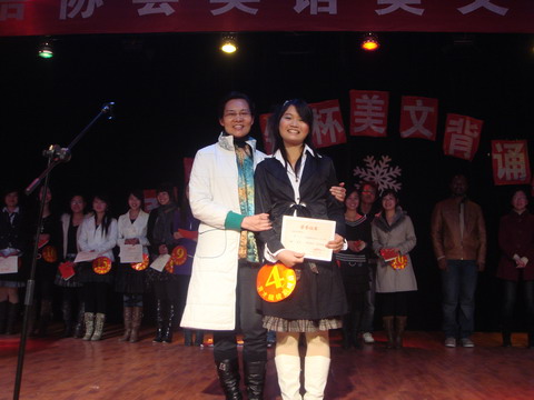 经过激烈角逐,08旅英大一班的潘陈桢获得一等奖,07商英大二班的呙艳萍和08商英大一班的雷春霞获得二等奖,07商英大二班的赵娜、黄植婷和07旅英大一班的何成获得三等奖。