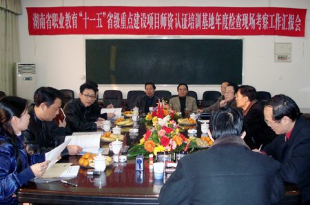 12月19日,由湖南省信息职院院长陈焕文为首的省教育厅专家组一行6人对我院07年立项的高职教育“十一五”重点项目――机电一体化专业课教师专业技能教学水平认证培训基地进行了中期检查。
