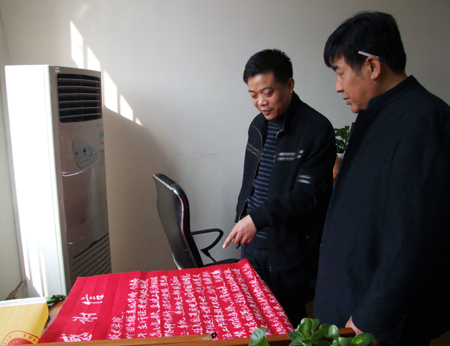 失主委托人娄底五中徐跃钢老师(右)送来感谢信