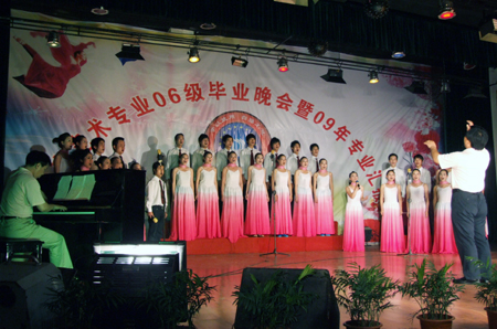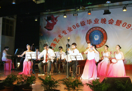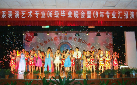 副院长刘自斌在晚会上致辞,他代表学院党委、行政,向06级表演艺术专业毕业生致以诚挚的祝贺,他希望三年大学生活成为同学们人生中最瑰丽精彩的一段回忆,希望大家回报社会,铸就更加美好的未来。