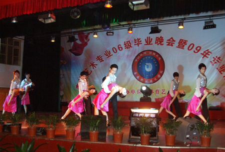 5月12日晚,我院学生活动中心灯火辉煌,体育艺术系06级表演艺术专业毕业晚会暨专业汇报演出在这里隆重举行。晚会邀请市委宣传部副部长何一波、市文化局党组书记、局长李东升、市文化局文艺科科长熊伟谊、市花鼓剧团副团长罗湘华、市电视台新闻综合频道总监刘永红亲临指导,院党委书记陈立楚、院长杜祥培、党委副书记欧友佳、副院长龙伟、周意坚、刘自斌、袁其谦、院纪委书记邹松建出席并观摩了演出。晚会由市电视台公共频道著名主持人李韬主持。
