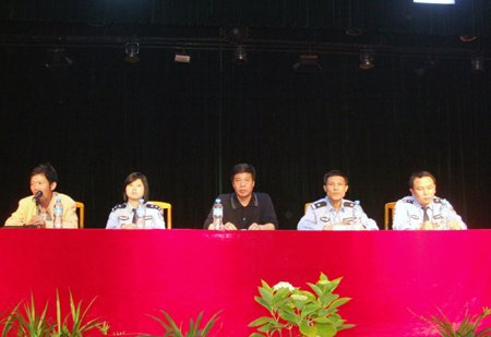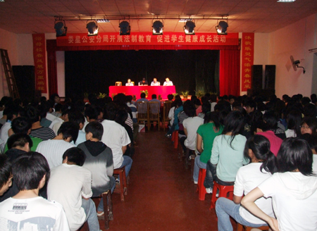 随后娄星区公安分局法制办陈纪云警官给大家作了安全法制方面的知识讲座。他结合当前青少年学生的特点,以案释法,从青少年违法犯罪的典型个案出发,对青少年犯罪进行了全面而深入的分析,既有理论又联系实际,尤其注重剖析同学们日常学习、生活和思想上存在的一些问题。