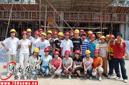 二十多个学生在工人师傅的指导下灵活地扎着钢筋、装配脚手架扣件……这是6月17日,记者在娄底市三星西街工程项目建筑施工工地上看到的一幕。