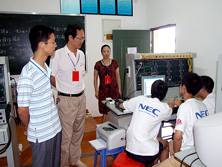 比赛一开始,我院教务处处长易爱良、电信系主任吴莲贵等领导就亲临赛场,视察了我院选手参赛情况,并鼓励他们稳定沉着,努力赛出好成绩,为学院争光。