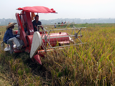 记者了解到,我院参与该型号收割机研发的副教授阳尧端,现已在水稻收割机研发领域获得11项专利技术成果,其中包括“南方水田驱动轮”的发明专利。我院领导与科技产业处始终对校企合作与发展高度重视,对南方水稻收割机的研发也给予了大力支持。2009年,我院与湖南湘丰通力合作,成功申报国家科技部“农业科技成果转化资金项目”,此次观摩的4LZ-0.8型水稻联合收割机即成为该项目首推实施机型。据悉,我院目前正与湖南湘丰农业装备有限公司洽谈深入合作事宜。(李莉 王宗凡)